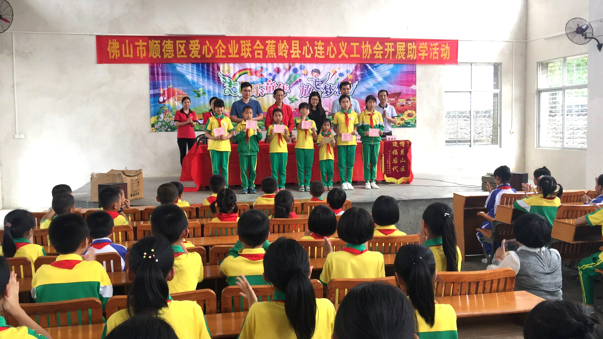 5月24日,九極公司與七家愛心企業(yè),聯(lián)合梅州市蕉嶺縣心連心義工協(xié)會,對蕉嶺縣的藍坊鎮(zhèn)高思小學(xué)和長潭鎮(zhèn)