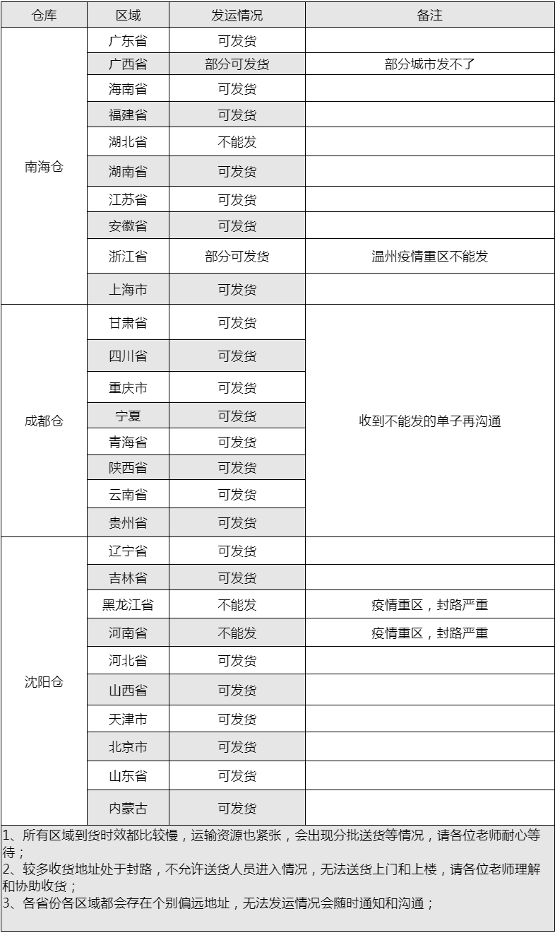 關(guān)于九極項(xiàng)目各倉(cāng)發(fā)運(yùn)通知